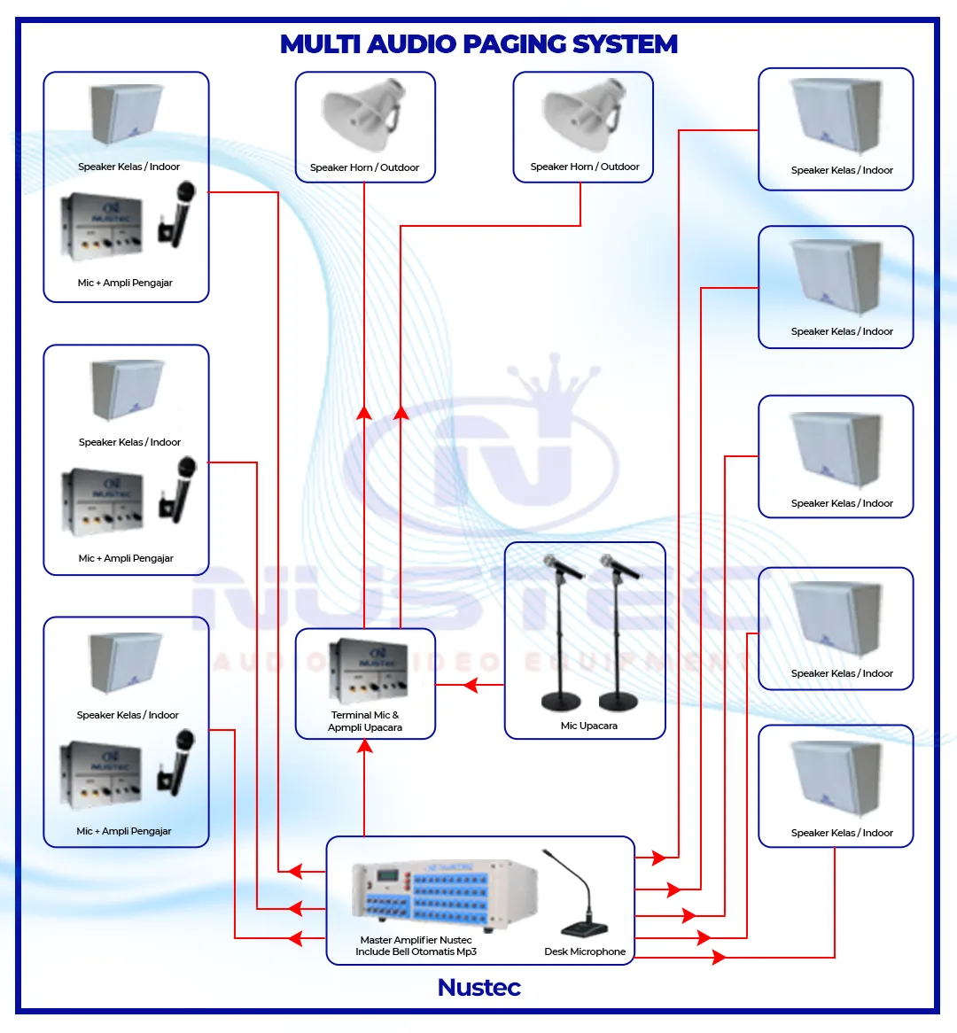 Perkembangan teknologi modern saat ini dapat dikombinasikan dengan berbagai teknologi lainnya, salah satunya adalah teknologi Audio dan Visual. NUSANTARA TEKINDO adalah salah satu perusahaan yang mengembangkan teknologi Audio – Visual untuk kemudian diciptakan beberapa produk yang bermanfaat. Setelah melalui beberapa tahapan pengembangan, maka dengan kerendahan hati, NUSANTARA TEKINDO memperkenalkan produk elektronik yaitu Audio Paging System Nustec Atau Sistem Paging Audio