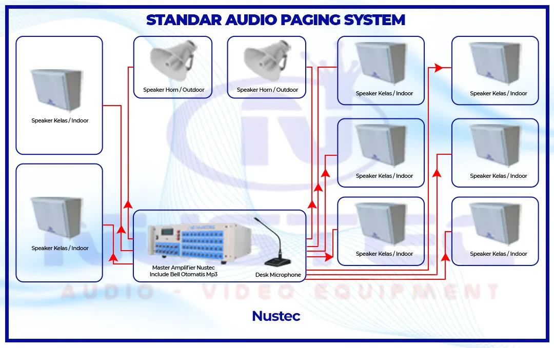 Standar – Sistem Audio Paging Sistem Audio Paging merupakan fasilitas komunikasi berbasis audio digital yang memungkinkan penyampaian informasi suara melalui perangkat kontrol pusat (Switch Control/Amplifier). Sistem ini mendukung penyiaran pesan suara secara selektif (acak) maupun serentak ke seluruh area yang ditentukan.